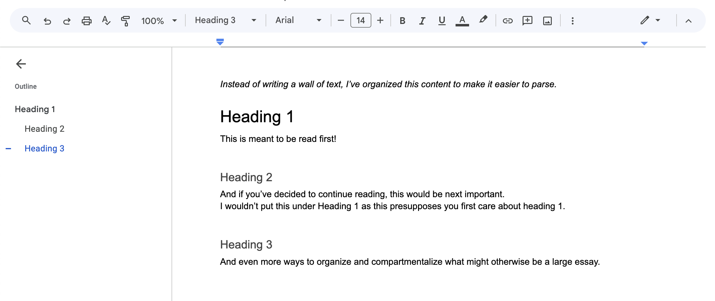 A simple example can be found in word processors like Google Docs. There is a system of headings, maybe 1-6. 1 being the most important, 6 being the least. Heading 1 is the largest and will likely be black. Heading 6 would be the smallest, and even using a shade of gray. Heading 1 has the higest visual priority on the page, it is whatever the designer wants to be noticed first. And heading 6 the opposite... you get it.